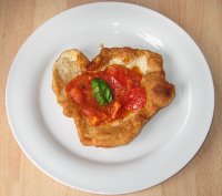 Slather each with an abundant spoonful of tomato sauce, top with a fresh basil leaf and 1 heaped tablespoon of grated Parmigiano. This particular type of pizza must absolutely be eaten piping hot. Tongue-burning hot.